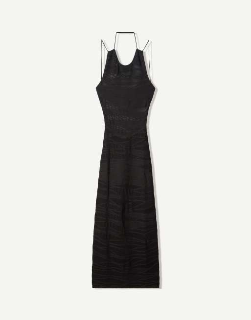 Bershka - Robe mi-longue texturée - Noir