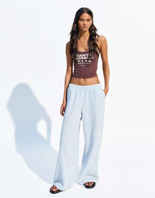 Bershka - Rustic - Pantalon ample style champêtre en tissu crêpe double épaisseur - Bleu clair