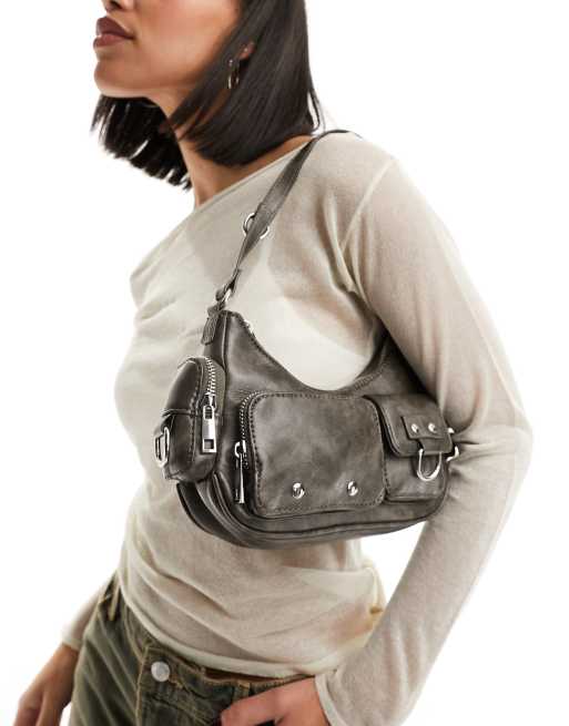 Bershka - Sac porté épaule en similicuir avec poches fonctionnelles - Marron délavé