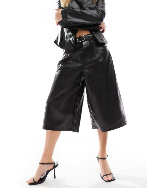 Bershka - Short long en similicuir - Noir