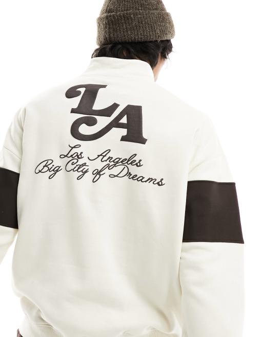 Bershka - Sweat à col zippé et imprimé LA - Écru