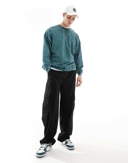 Bershka - Sweat oversize à broderie ton sur ton - Vert