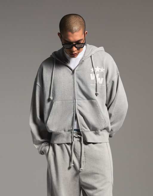 Bershka - Sweat zippé coupe carrée à imprimé - Beige