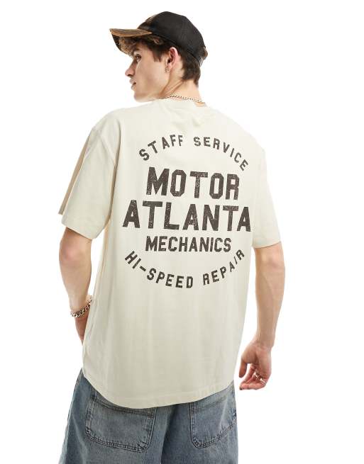 Bershka - T-shirt à imprimé Motor Atlanta - Taupe