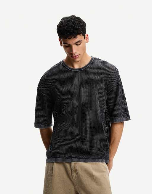 Bershka - T-shirt en tulle à manches courtes - Noir
