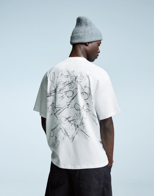 Bershka - T-shirt imprimé à manches courtes - Blanc