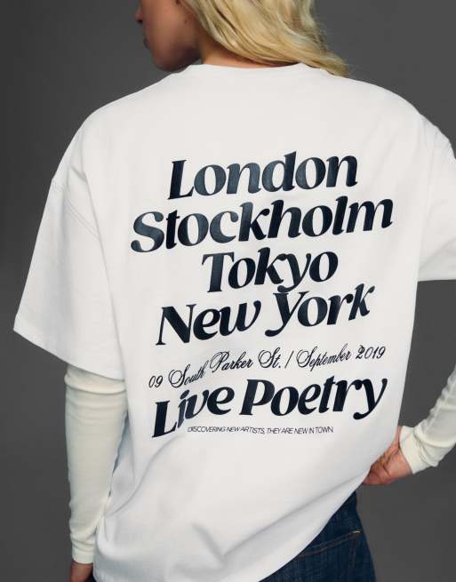 Bershka - T-shirt imprimé à manches courtes - Blanc