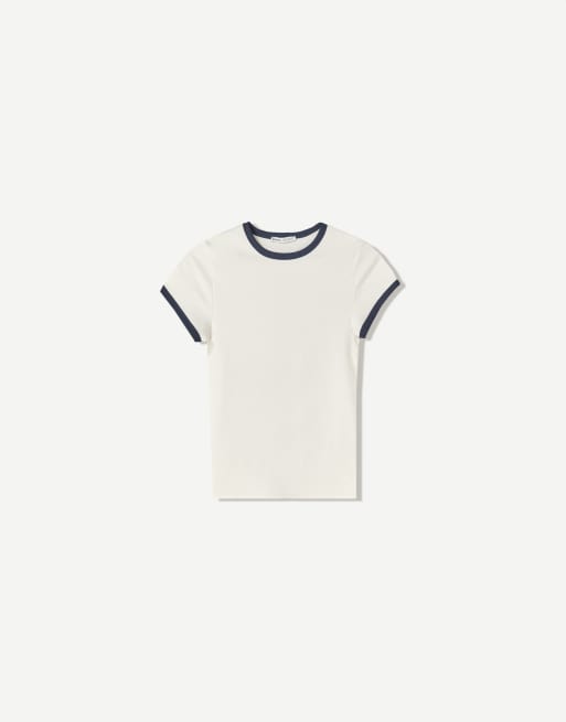 Bershka - T-shirt manches courtes contrasté - Blanc