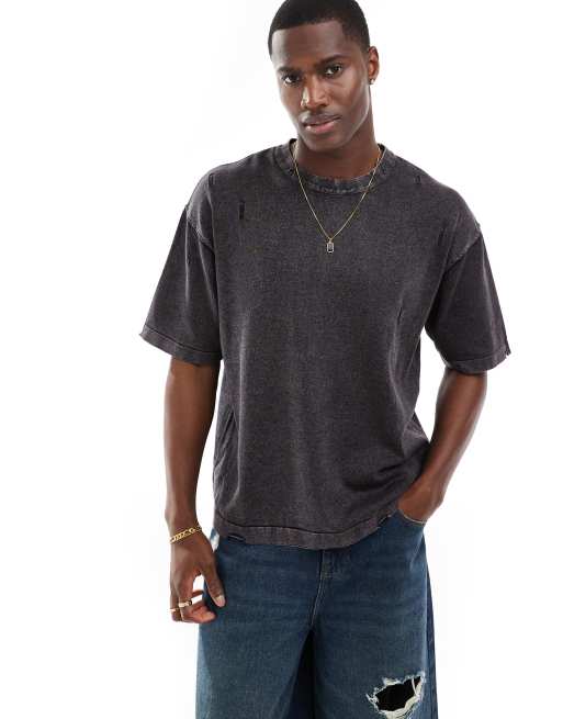 Bershka - T-shirt - Noir délavé