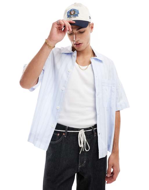 Bershka - T-shirt rayé coupe carrée - Bleu