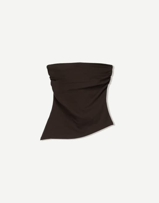 Bershka - Top bandeau à détail froncé - Marron