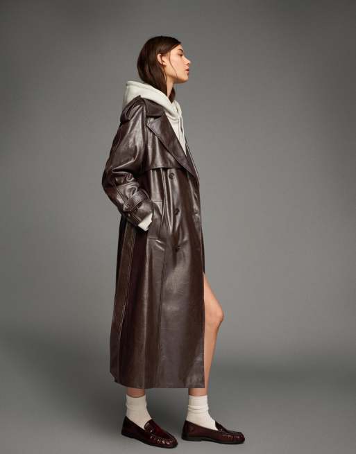 Bershka - Trench-coat en similicuir - Marron