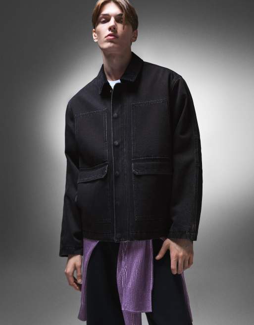 Bershka - Veste en jean avec poches - Noir