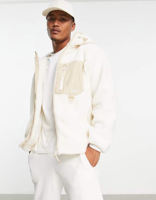 Bershka - Veste zippée en imitation peau de mouton duveteuse - Blanc