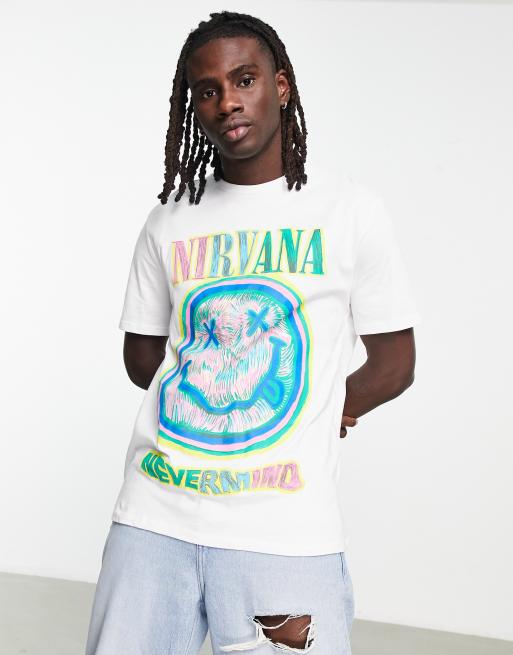 Bershka x Nirvana - T-shirt à imprimé visage - Blanc