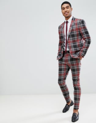 boohooMAN - Costume ajusté à gros carreaux - Rouge