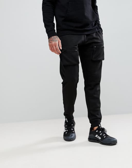 boohooMAN - Pantalon de jogging ajusté avec poche zippée - Noir