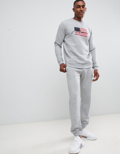 boohooMAN - Survêtement motif drapeau américain - Gris