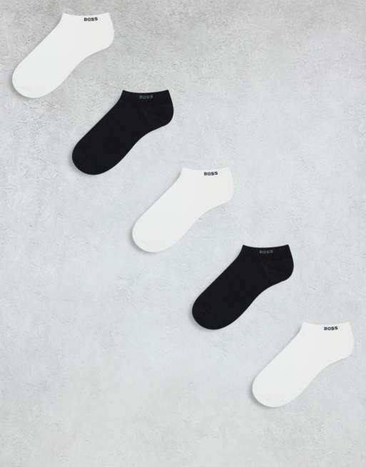 BOSS Bodywear - Lot de 5 paires de chaussettes basses à logo - Blanc/noir