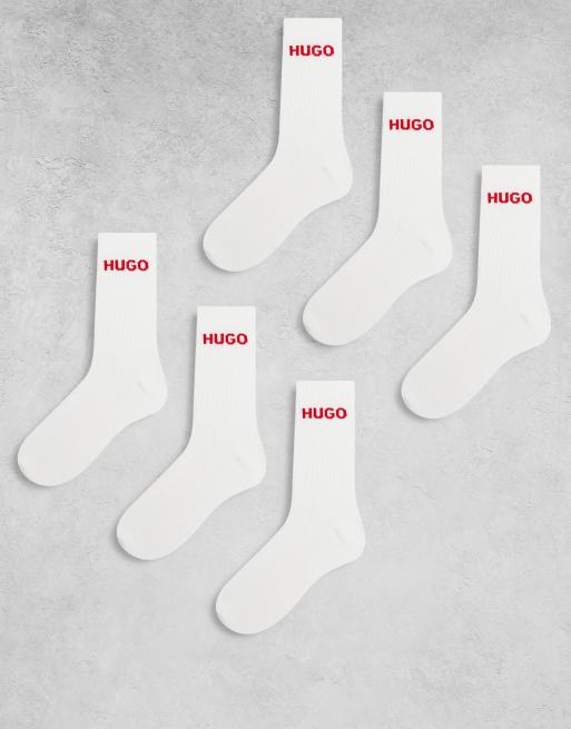 HUGO Bodywear - Lot de 6 paires de chaussettes côtelées - Blanc