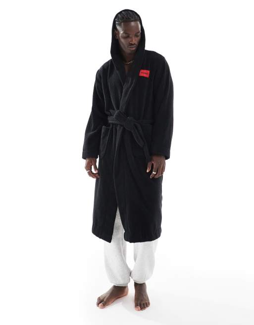 HUGO - Bodywear - Robe de chambre en polaire à capuche - Noir