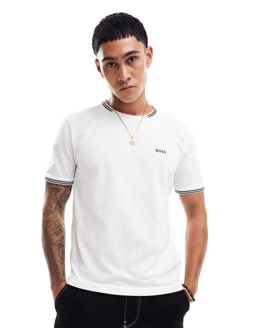 BOSS Green - Taul - T-shirt à liserés - Blanc