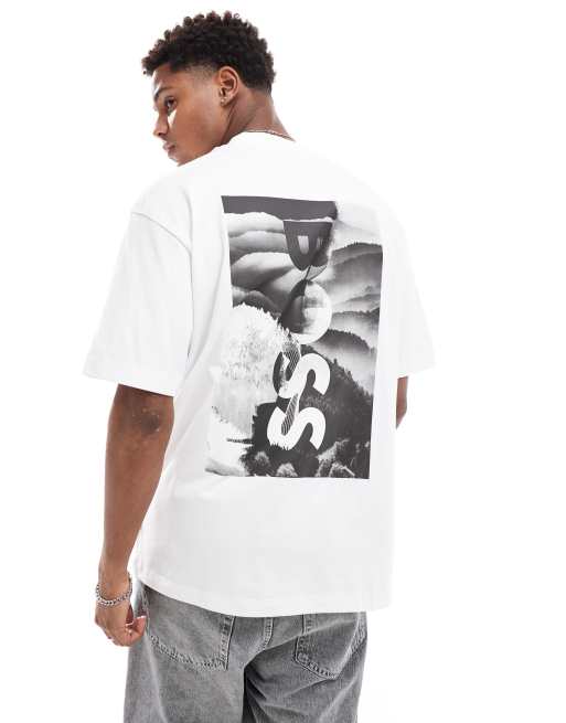 BOSS Orange - Geological - T-shirt décontracté imprimé à l'avant et au dos - Blanc