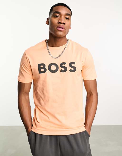 BOSS Orange - Thinking 1 - T-shirt à grand logo - Orange pastel