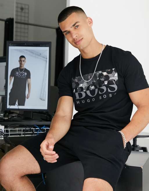 BOSS - Teally - T-shirt à empiècement imprimé avec grand logo - Noir
