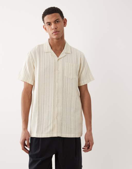 Brave Soul - Chemise d'ensemble texturée rayée à manches courtes - Crème et marron