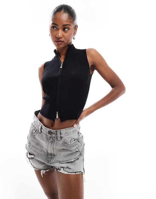 Brave Soul - Gilet de tailleur en maille côtelée à fermeture éclair - Noir
