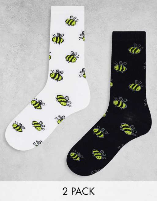 Brave Soul - Lot de 2 paires de chaussettes à motif abeilles - Noir et blanc