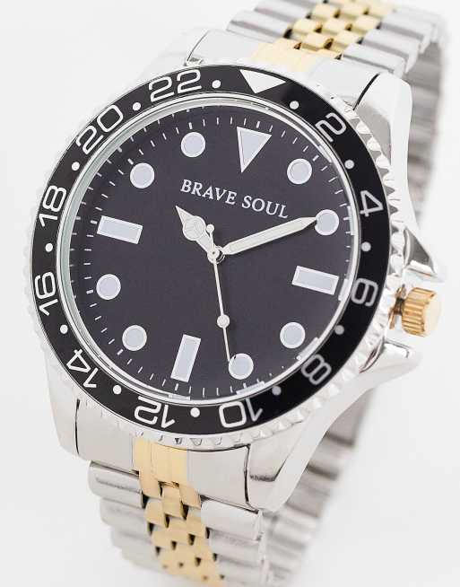 Brave Soul - Montre-bracelet à maillons épais - Doré et argenté