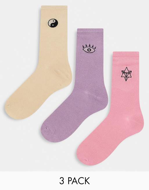 Brave Soul - Peace - Lot de 3 paires de chaussettes brodées - Vieux rose sable et mauve