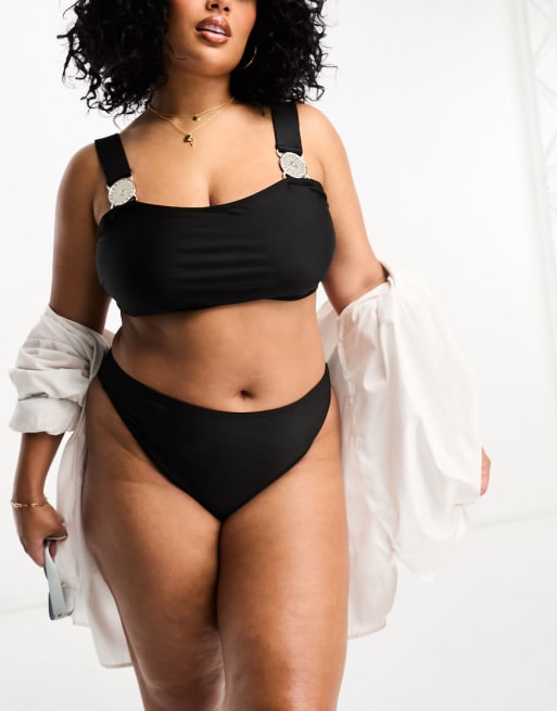 Brave Soul Plus - Bikini à encolure carrée avec détail bijou - Noir