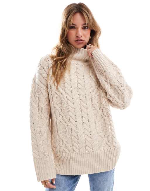 Brave Soul - Pull à col roulé en maille torsadée - Taupe