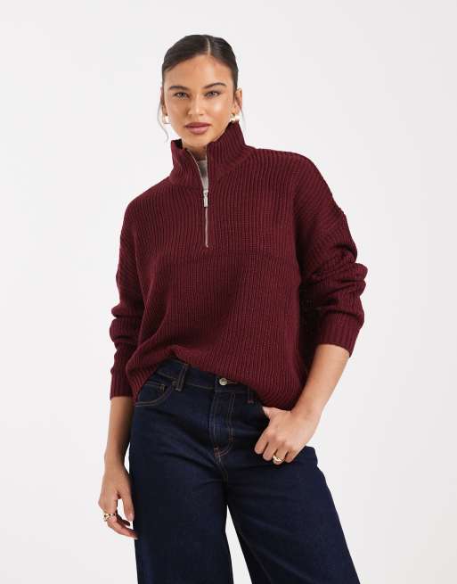 Brave Soul - Pull en maille épaisse à col zippé - Bordeaux