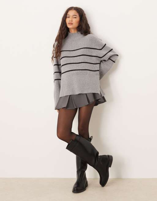 Brave Soul - Pull large rayé col montant - Noir et gris