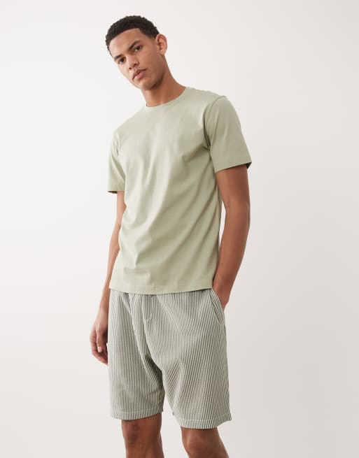 Brave Soul - Short d'ensemble à rayures - Vert sauge et écru