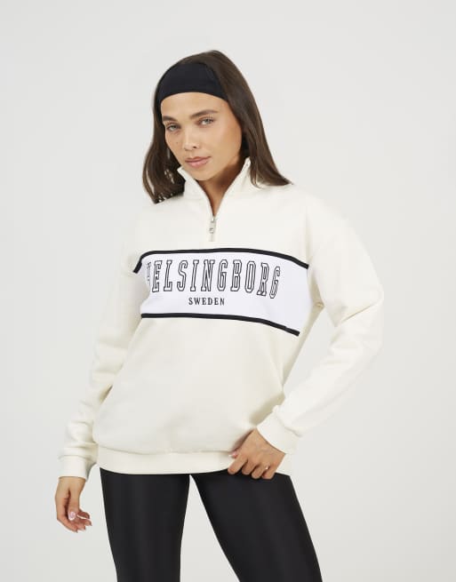 Brave Soul - Sweat à col cheminée zippé avec broderie - Crème