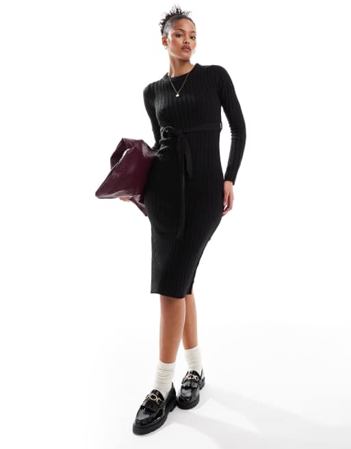 Brave Soul Tall - Robe mi-longue en maille avec fente - Noir