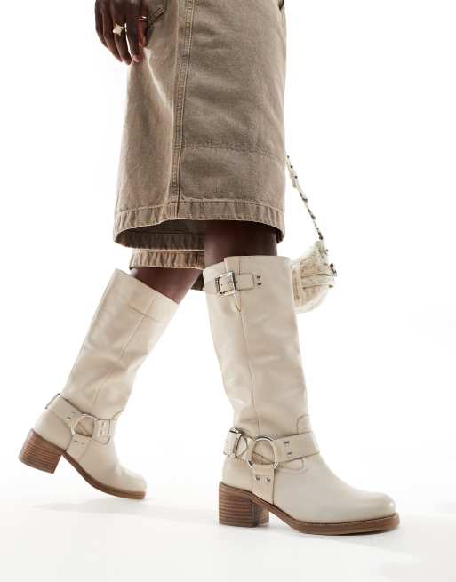 Bronx - New Camperos - Bottes style motard en cuir - Lait d'avoine