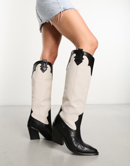 Bronx - New Kole - Santiags montantes en cuir - Noir/blanc cassé