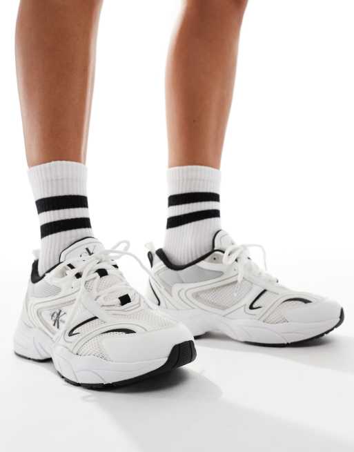 Calvin Klein Jeans - Baskets rétro style tennis en tulle - Blanc et noir