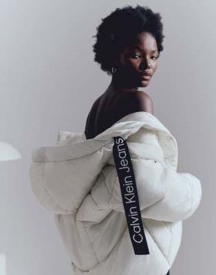 Calvin Klein Jeans - Doudoune courte à logo et cordon de serrage - Blanc