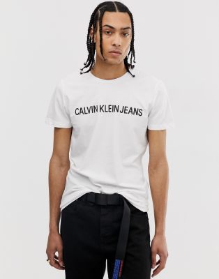Calvin Klein Jeans - Institutional - T-shirt ajusté avec logo en cursives - Blanc