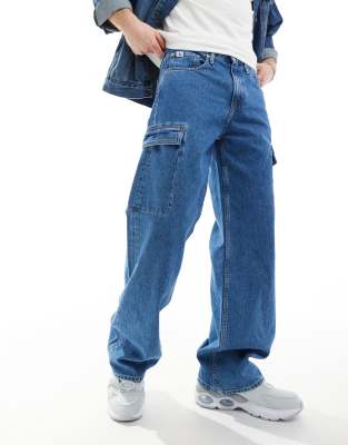 Calvin Klein Jeans - Jean cargo ample style années 90 - Bleu moyen délavé