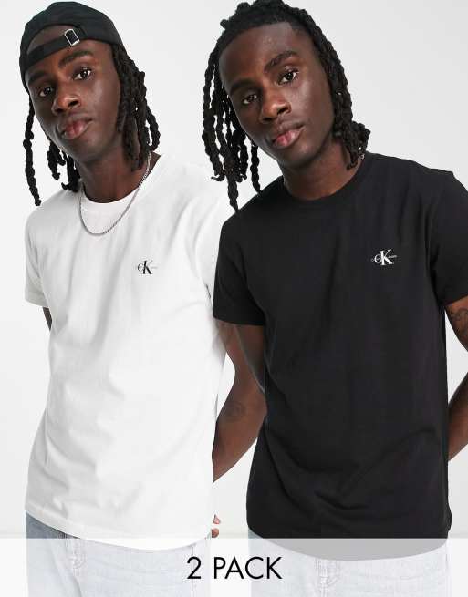 Calvin Klein Jeans - Lot de 2 t-shirts à logo emblématique - Noir/blanc