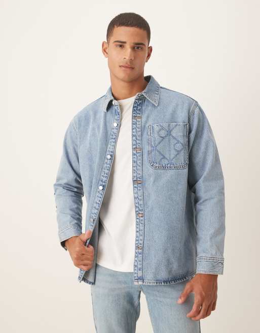 Calvin Klein Jeans - Surchemise en jean style années 90 avec poche à logo - Taupe délavé