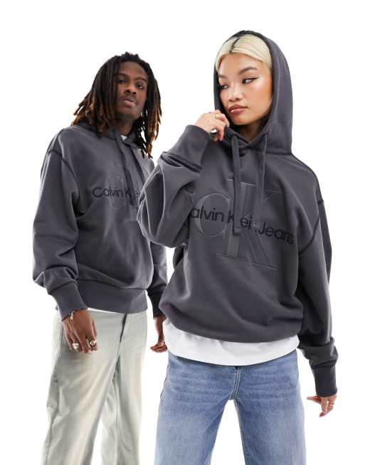 Calvin Klein Jeans - Sweat à capuche unisexe avec logo monogramme - Noir délavé